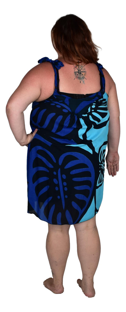 The Aruba Dress is an easy, breezy resort dress designed for warm-weather comfort and effortless style. Featuring a bold blue monstera print, this lightweight rayon dress has adjustable tie straps and a relaxed silhouette that flatters a wide range of body types. The open armholes and flowy cut make it perfect for beach days, resort wear, cruises, and casual summer outings.