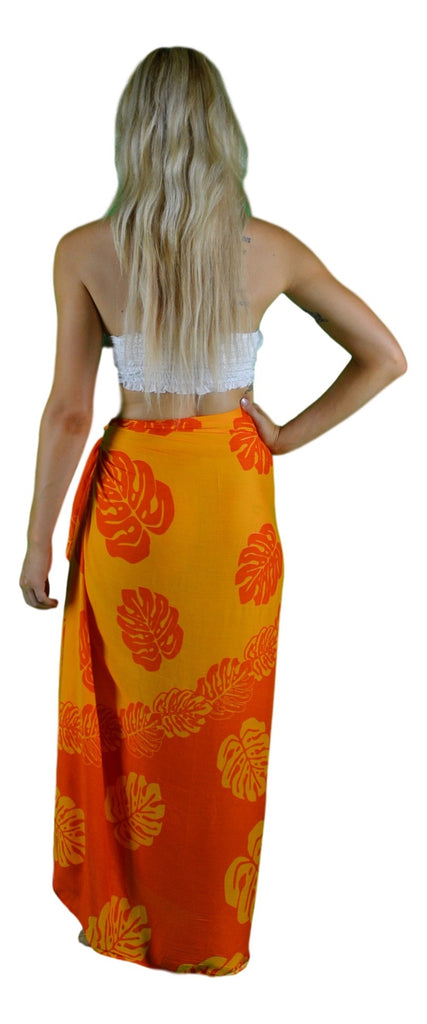 Keywords: sarong, batik, hand printed, tribal hibiscus, orange, yellow, floral sarong, rayon, pareo, women’s beachwear, one size, resort wear, handmade, bali, wholesale