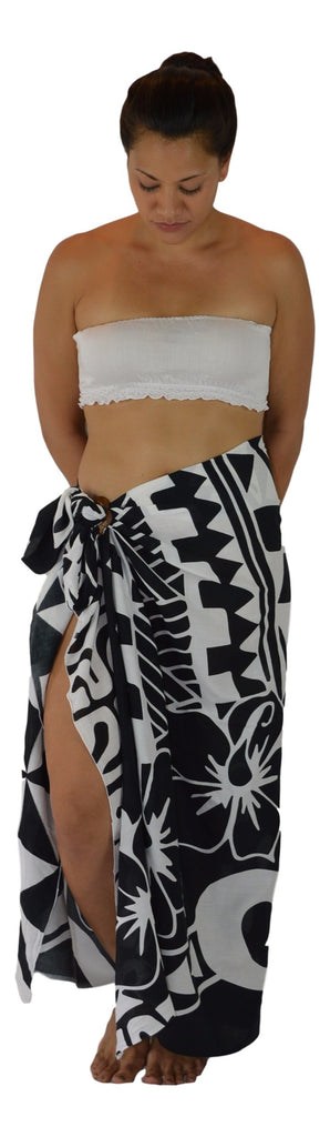 This beautiful hand-printed sarong features the Tribal Hibiscus design in rich tones on a black and white background. Soft, lightweight, and oversized, it’s the perfect beach cover-up, resort essential, or vacation wrap. Each piece is individually crafted, giving every sarong a unique artisan character. A FREE coconut shell buckle is included for easy styling.