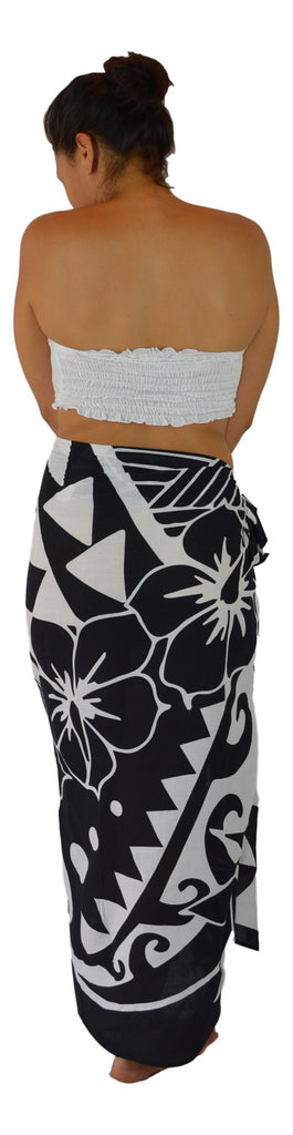 Keywords: sarong, batik, hand printed, tribal hibiscus, black, floral sarong, rayon, pareo, women’s beachwear, one size, resort wear, handmade, bali, wholesale