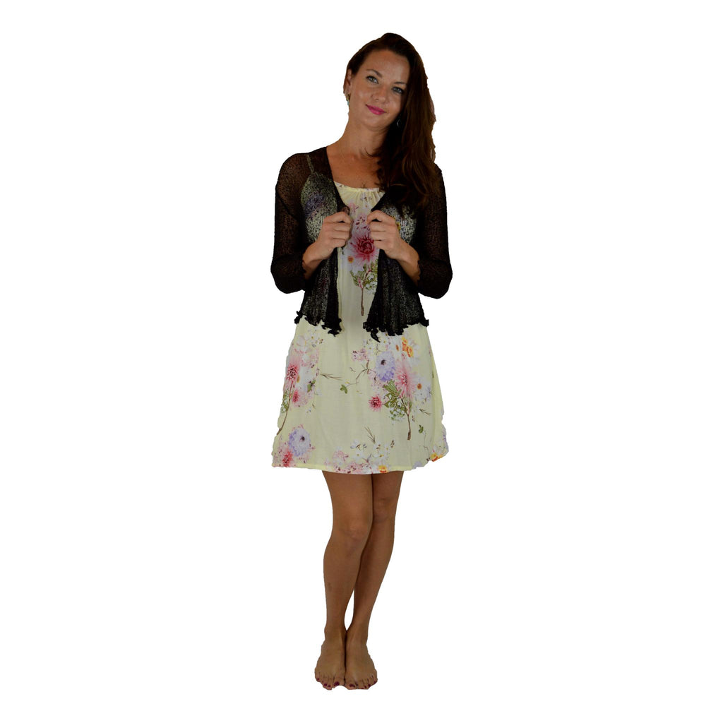 This lightweight sheer knit cardigan is an easy layering piece designed to add texture and coverage without weight. Styled much like our shawl sweaters, this open-front cardigan drapes softly over dresses, tanks, and tops and works beautifully year-round. The airy knit makes it breathable and comfortable, perfect for warm climates or indoor layering. Loose and relaxed, it also works well for plus sizes. Please note this listing is for the cardigan only; the dress shown is not included.