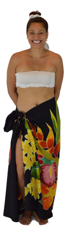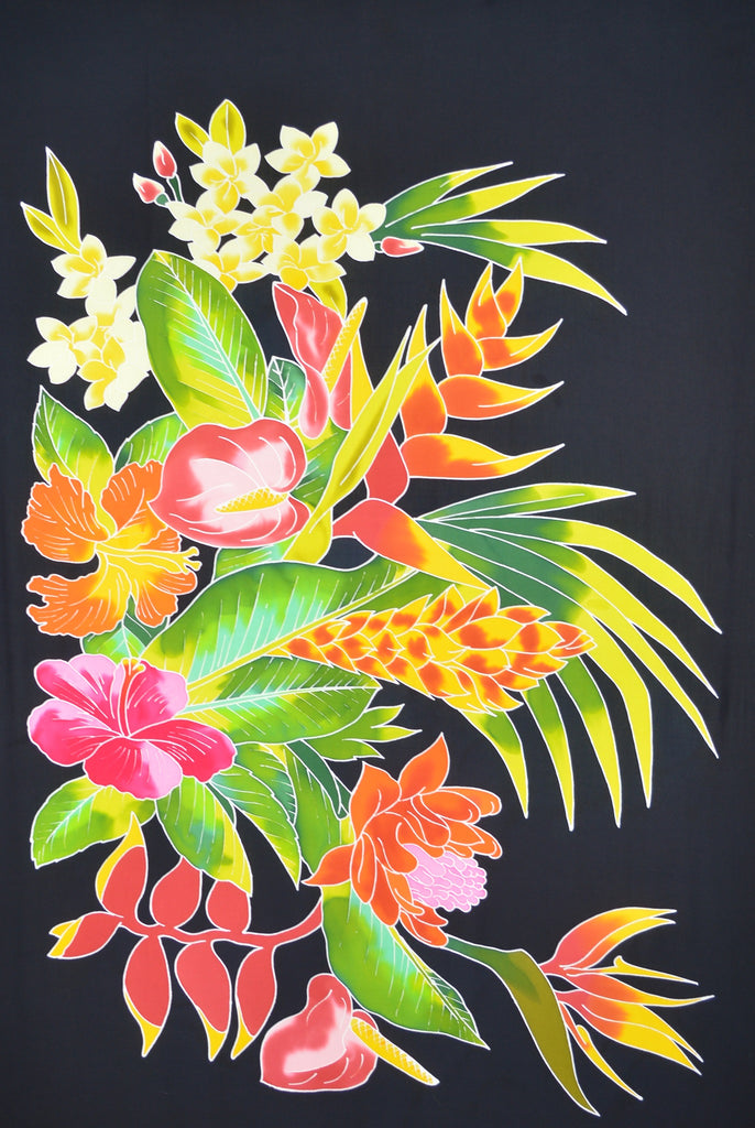 Sarong B-122-F - Batik- Tropical Bouquet Black